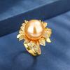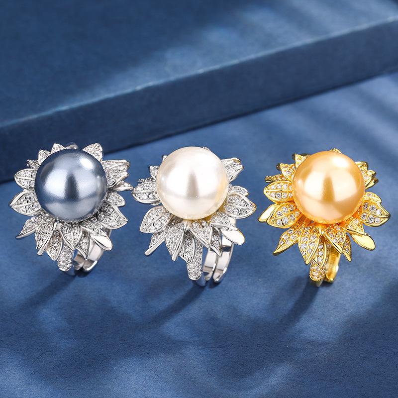 Jewelry Copper Platinum Plated With Simulation Pearl Flower Diamond Women'S Ring 14Mm