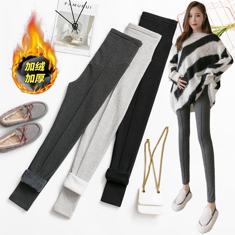 Real Autumn and Winter New Maternity Pants Fashion Pants Pregnant Women Fleece Thickened Leggings Breathable