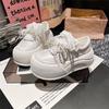 Leather Korean Version Big Head Lace Bow Pearl Bread Shoes Platform Muffin Small 6cm Casual Board Shoes Women