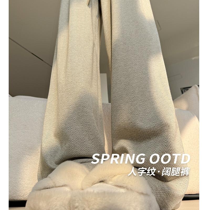 Herringbone Wide-leg Pants Women's High-end Pants Women's Spring and Autumn New Thin and Narrow Straight-leg Pants Lazy Casual Pants