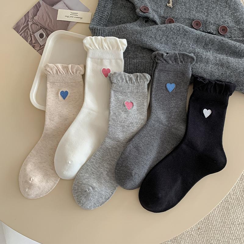 Female Spring and Autumn Sweet Embroidery Love Bubble Mouth Boneless In The Tube Pile Socks