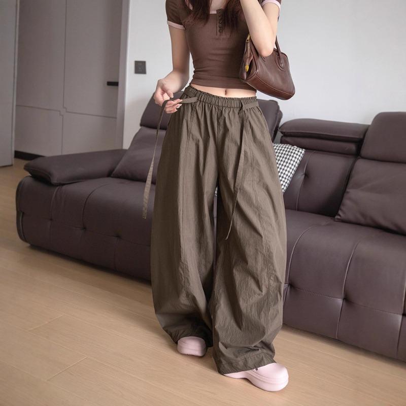 Ice Silk Scimitar Pants Women's Summer Thin New High-waisted Thin Small Design Sense Casual Quick-drying Wide-leg Pants