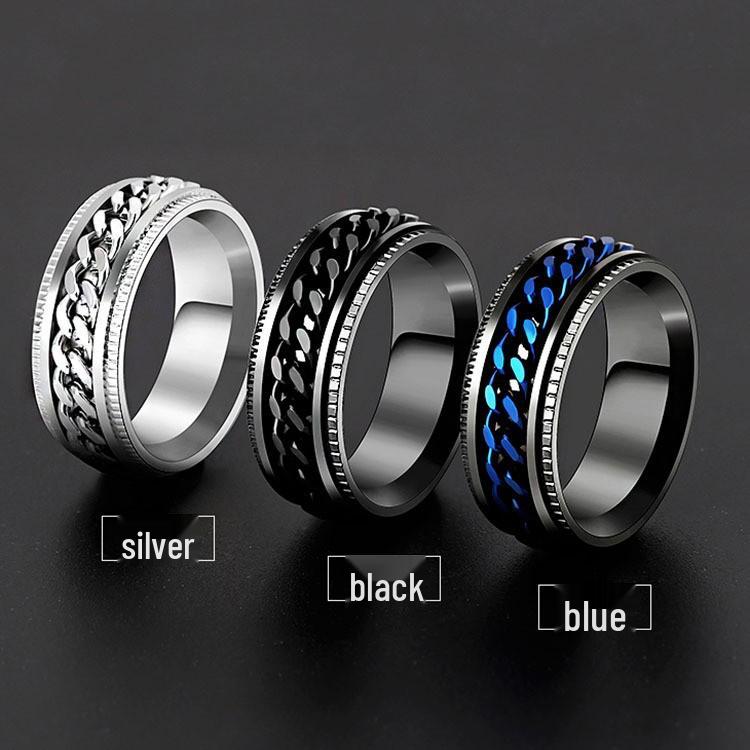 Men's Trendy Rotatable Titanium Steel Chain Ring for Couples