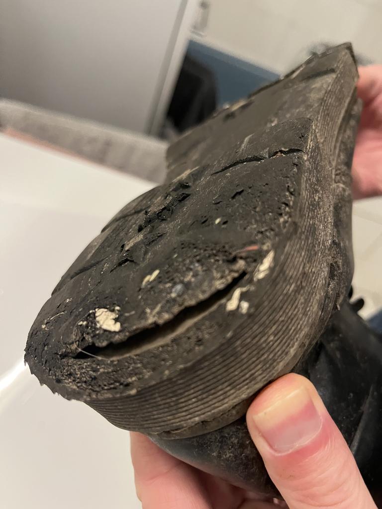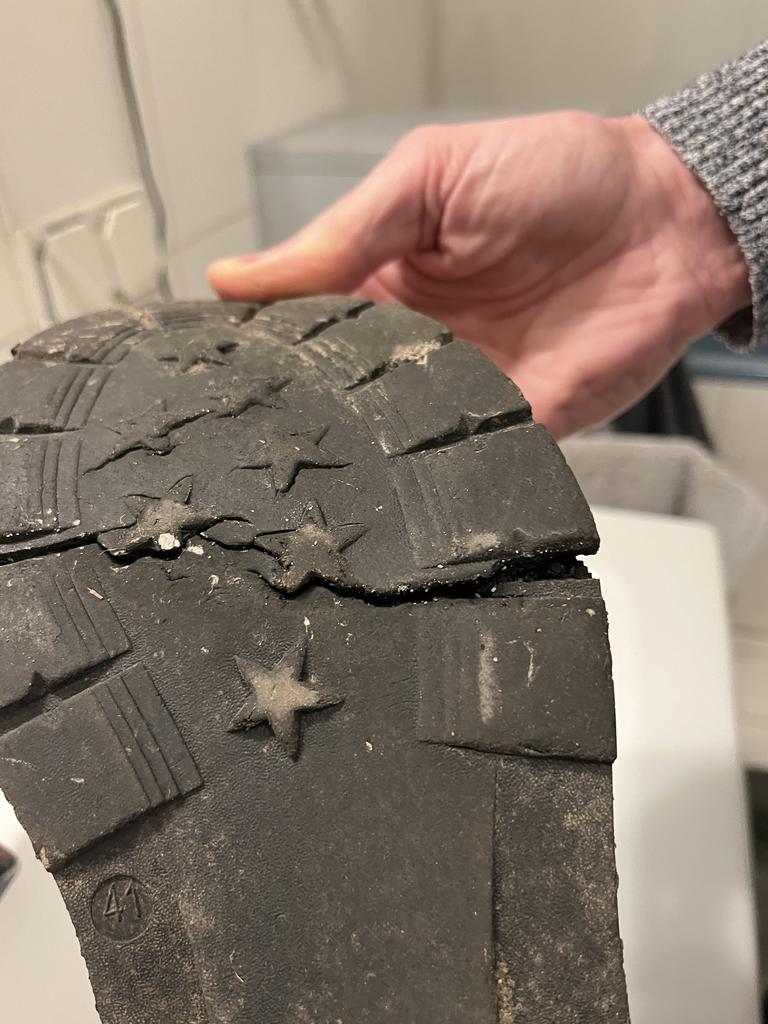 The rear part of the sole was already completely worn down after two weeks; on the right shoe, the sole completely detached from the shoe. Furthermore, the right sole ripped completely across. Unfortunately, I can only throw the shoes away now.Shoe1
