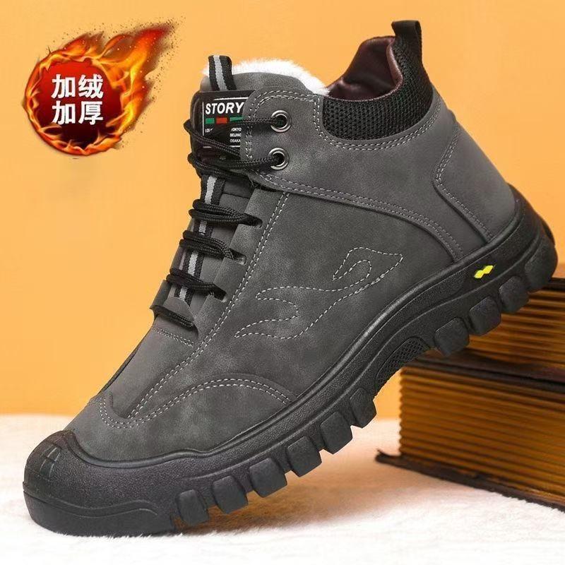 Cotton Shoes Men's Leather High-top Outdoor Velvet Thickened Snow Boots Labor Insurance Work Warm Shoes Sports Men's Shoes