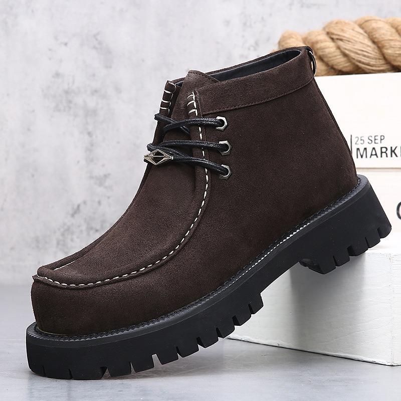 Trendy Brand Retro Martin Boots Men's Leather Knight Boots Desert Mickey Big Head Locomotive Boots Thick Sole Heightening Tooling Short Boots