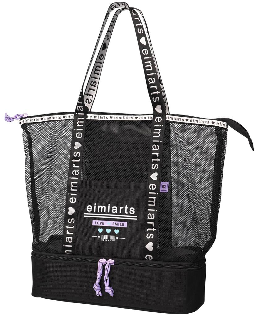 Mesh Tote Bag for Pool One Size [Arisana] Girls, Bag, 2-Layer, Stylish, Junior, Black,