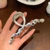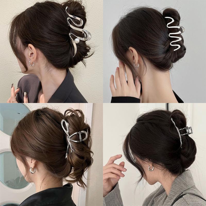 Silver Textured Metal Shark Hair Claw - Women's Stylish Updo Clip Accessory