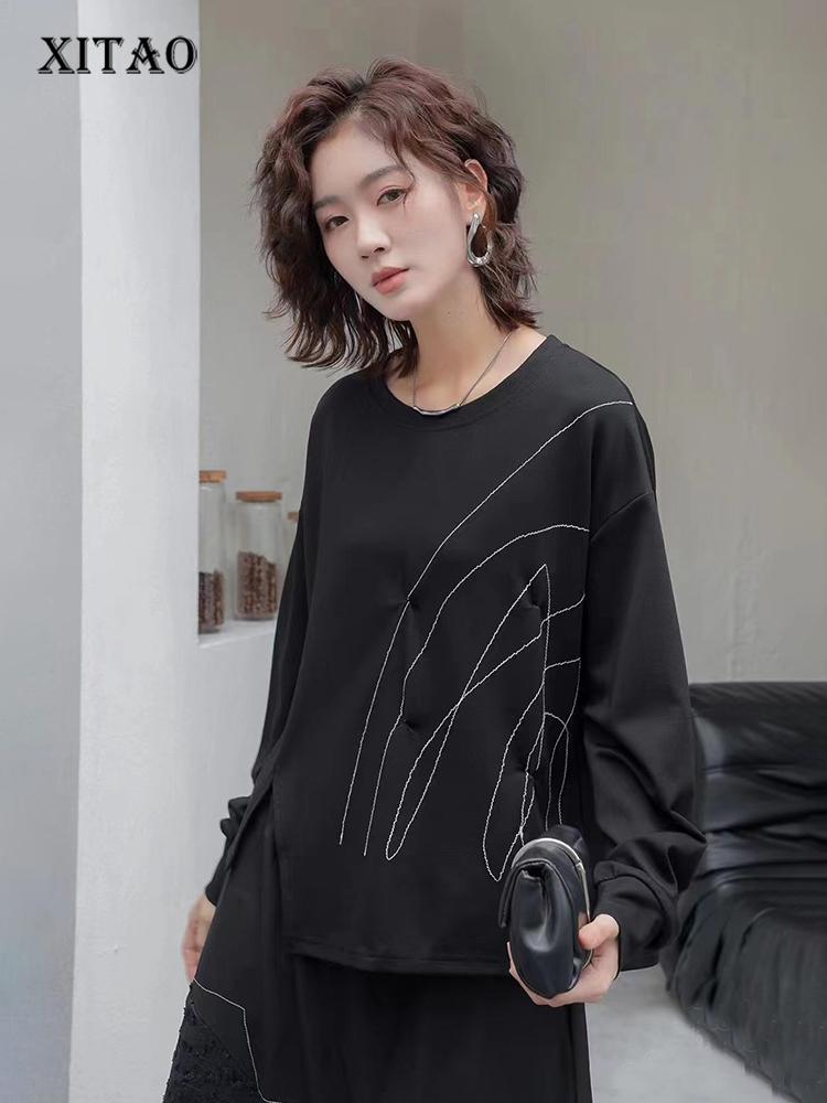 Xitao Line Pleated Slit Irregular Loose Long Sleeved T-shirt GJ1243
