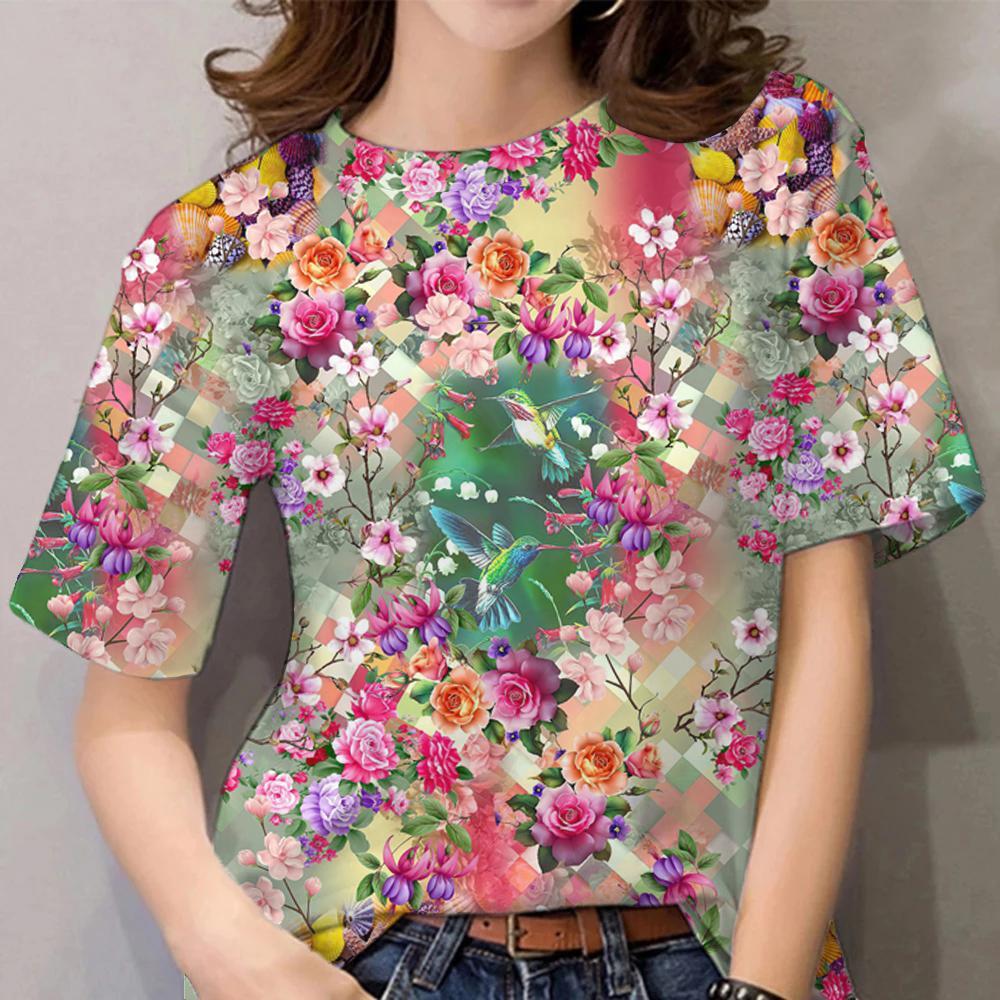 Women's T-shirt 3D Painted Flower Women's Casual O-neck T-shirt Basic Clothing Summer Women's Daily Life