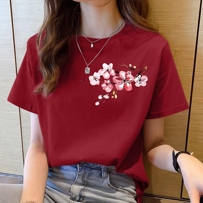 Women's Clothing Short Sleeved Top Women's T-shirt Red Top Women's T-shirt Summer Round Neck Women's Clothing Short Sleeved T-shirt Women's Top