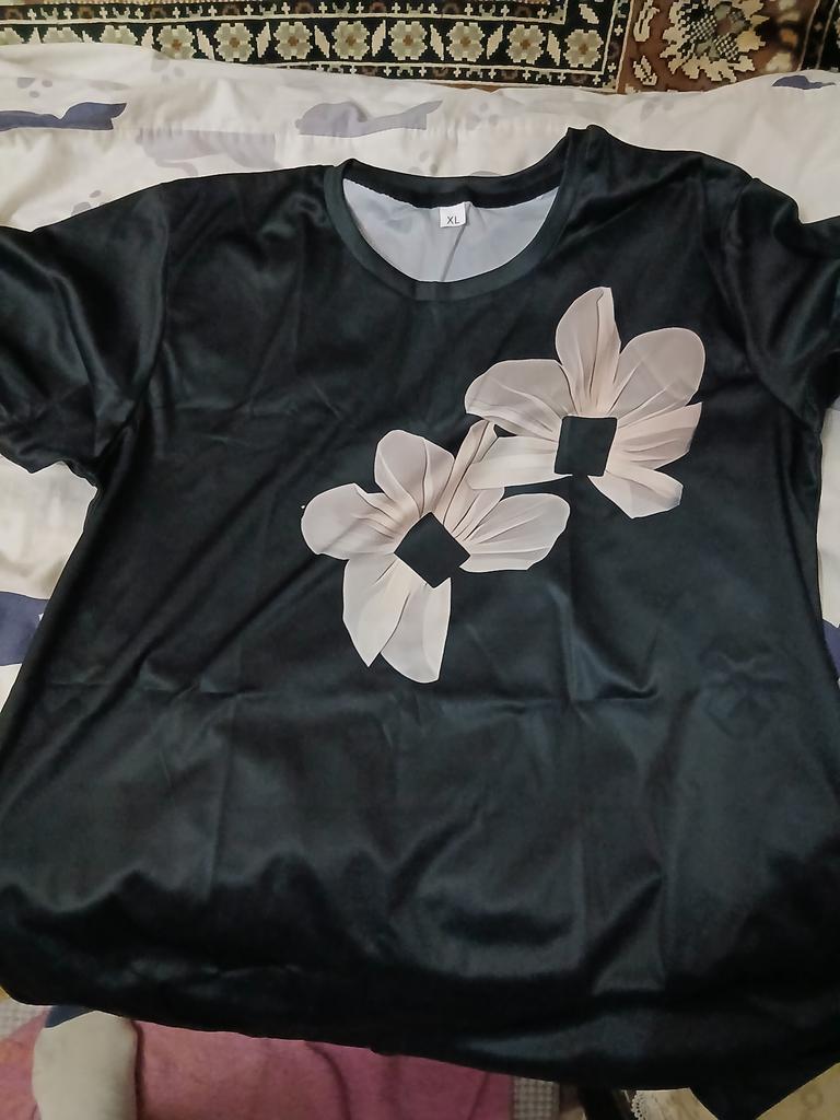 On the picture, the t-shirt looks like it's decorated with a ribbon, but in reality, it's a painted design, which is a shame.