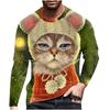 Spring and Autumn Round Neck Cat Pattern 3D Printed Top Fashionable Casual Long Sleeved Men's T-shirts