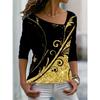 Plus Size 2024 Summer New Women's Printed Pattern T-Shirt Asymmetric Neck Long Sleeve Loose Top