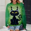 Women's Long-Sleeved T-Shirt for Fall Loose-fitting Casual Long-Sleeved Top Whimsical Cat Print OverSize Women's Clothing