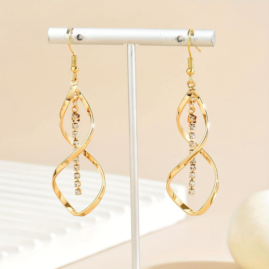 Women's Spiral Earrings - Elegant Interlocking Loop Design with Synthetic Gemstones, Suitable for Daily and Party Wear, Exquisite Metal Earrings