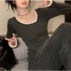 Big Round Neck Retro Temperament Contrasting Color Slim-fitting Bottoming Top Autumn Design Sense with Knitted Pullover Sweater Inside