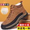 Wool Winter Warm Men's Cotton Shoes Genuine Leather Suede Cowhide Outdoor Casual Men's Shoes Medium Shoes
