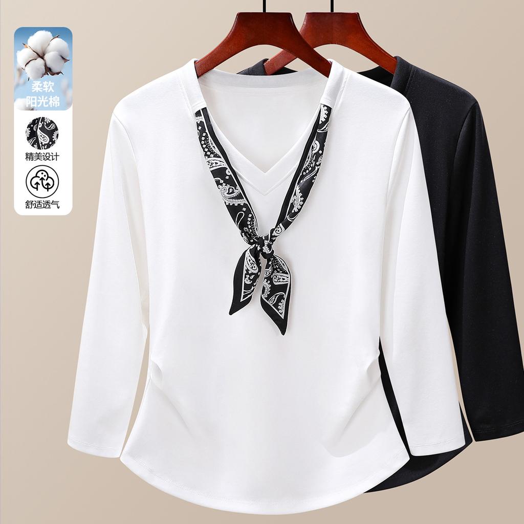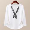 Ribbon Design Split-sleeved Women's Early Autumn New Wrinkled and Thin Versatile Niche Bottoming Shirt Top