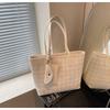 Large-capacity Bag Women's Summer Versatile New Casual Plaid Shoulder Bag Textured Commuter Tote Bag