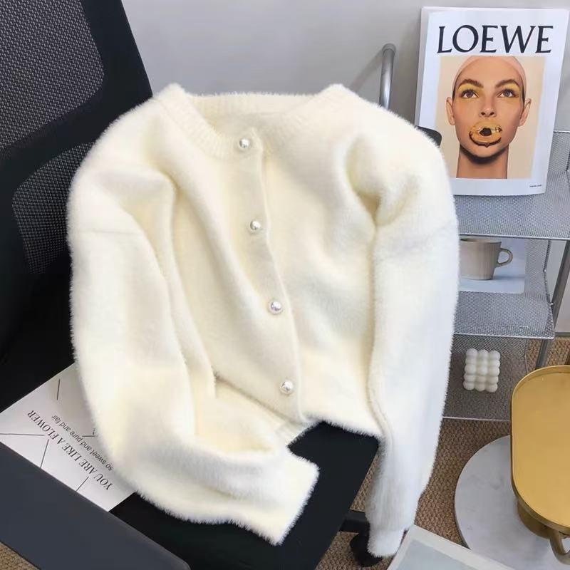 Women's Mint Green Faux Mink Knit Cardigan - Autumn/Winter Design