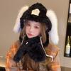 Cute Plush Rabbit Ear Hat for Women In Autumn and Winter Thick Pullover Hat Ear Protection and Warmth Lei Feng Hat Scarf Integrated Hat