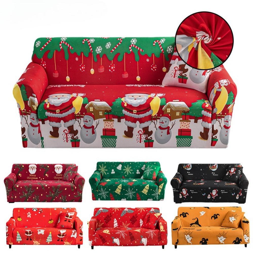 Elastic Santa Claus Printed Sofa Cover Full Protection Slip Resistant Pet Proof Durable Stretchable Sofa Protector