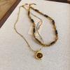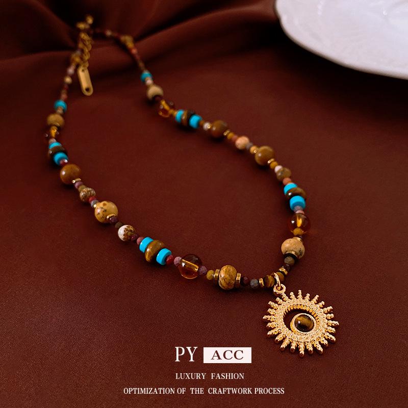 Sun & Stone Pendant Necklace - Titanium & Stainless Steel Clavicle Chain Jewelry