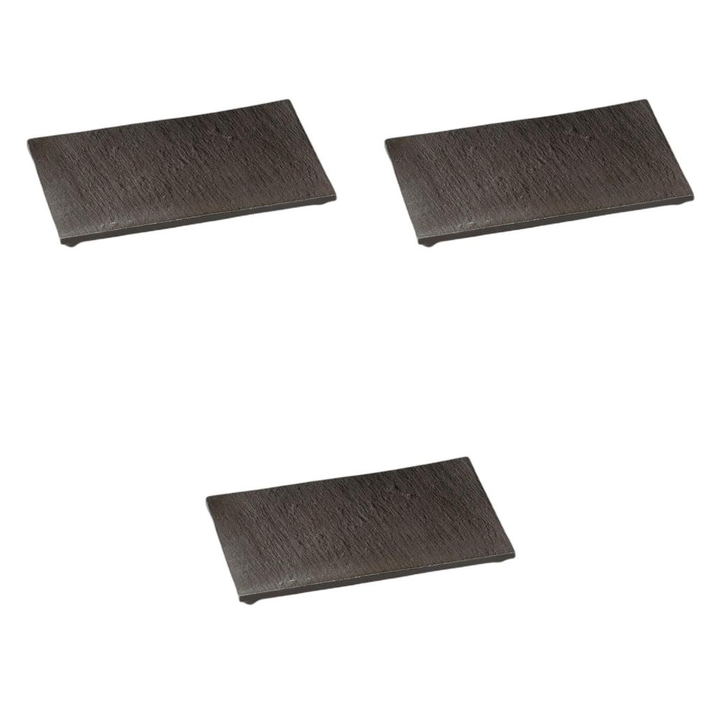 Set of 3 Black Ceramic Rectangular Plates X 16 X Ceramic Serving Plates by Setomonohonpo Stone-Grain Four-Legged 9.0cm [27 2cm]