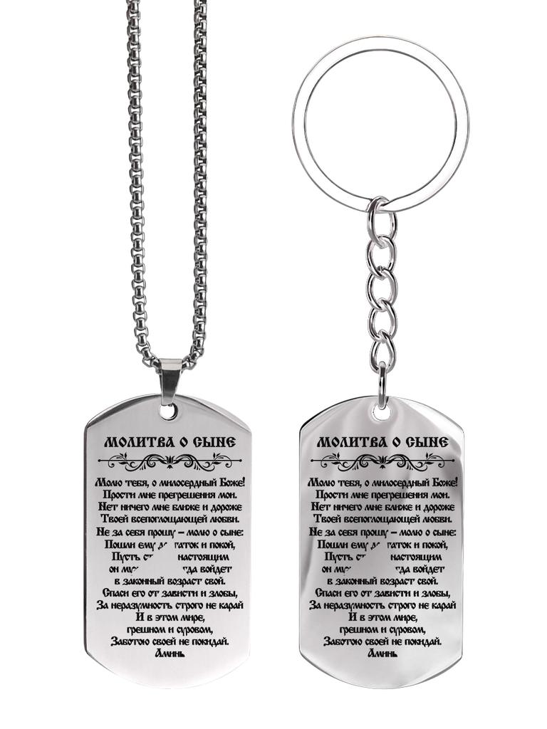 Stainless Steel Keychain and Necklace, Prayer for a Son, Carved Badge, Ideal Gift for Men, Couples, Boyfriend, Family & Friends