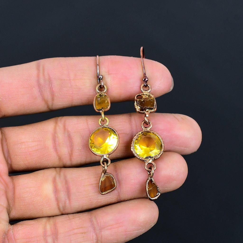 Citrine Earrings Gemstone Jewelry, Copper Electroformed Earrings, Handmade Jewelry Birthstone Earrings, Gift For Him