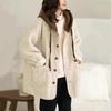 Women Spring and Autumn Mid-Long Thick Pocket Jacket Lamb Plush Hooded Overcoat Outerwears
