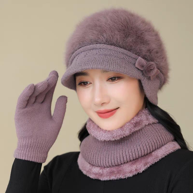 Thick Warm Hat Winter Hat Middle Aged and Elderly Mother Old Lady Knitted Cotton Hat Grandma Rabbit Wool Hat