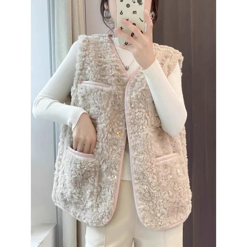 Lamb Wool Vest Jacket Women's Autumn and Winter New Leather Plush Integrated Outer Vest Vest Women's Trend