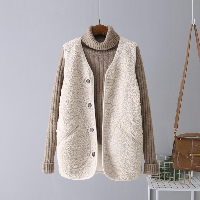 Lamb Wool Vest Jacket Women's Autumn and Winter Fur Integrated Loose and Thin Plush Wear Suede Sleeveless Vest On Both Sides