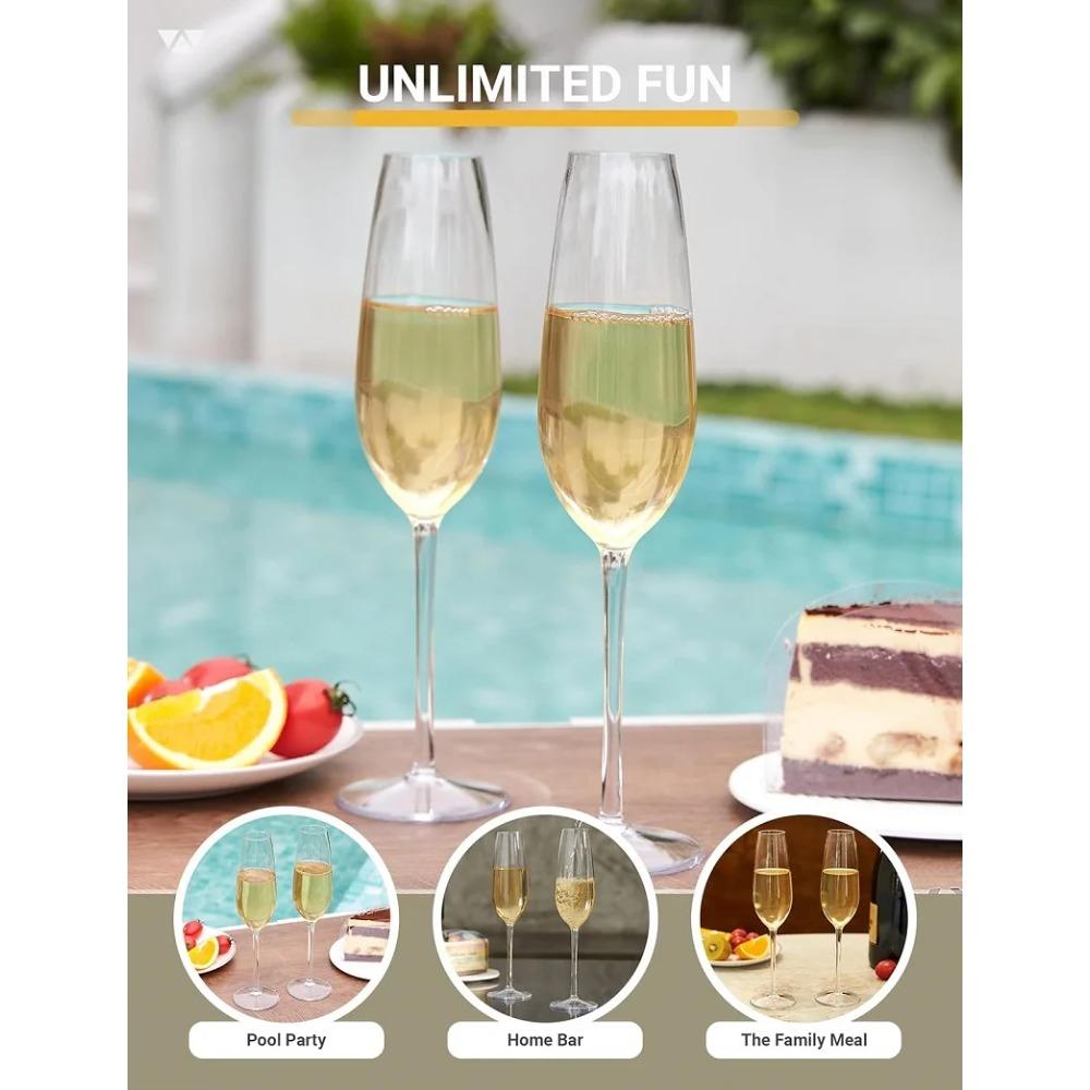 MICHLEY Unbreakable Champagne Flutes Floating Glasses Set Tritan Plastic Sparkling Wine Glass For Pool Wedding Party Barware