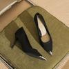 8851 [Discontinued] High Heels Women's Thin Heels Autumn 2025 New Pointed Head Temperament Metal Head Shallow Mouth Single Shoes