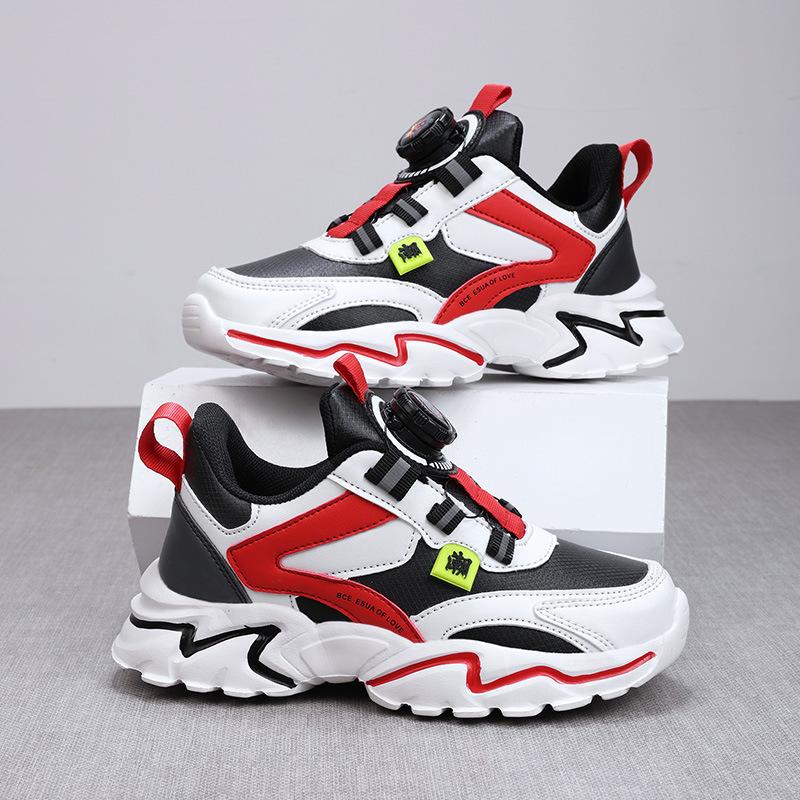 Boys Shoes 2025 Autumn and Winter New Leather Waterproof Sports Shoes Mesh Breathable Rotating Buckle Shoes Soft Sole Casual Shoes