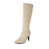 FOREADA Women Knee High Boots Pointed Toe Kitten High Heels Zipper Long Boots Ladies Fashion Shoes Autumn Winter Beige 46