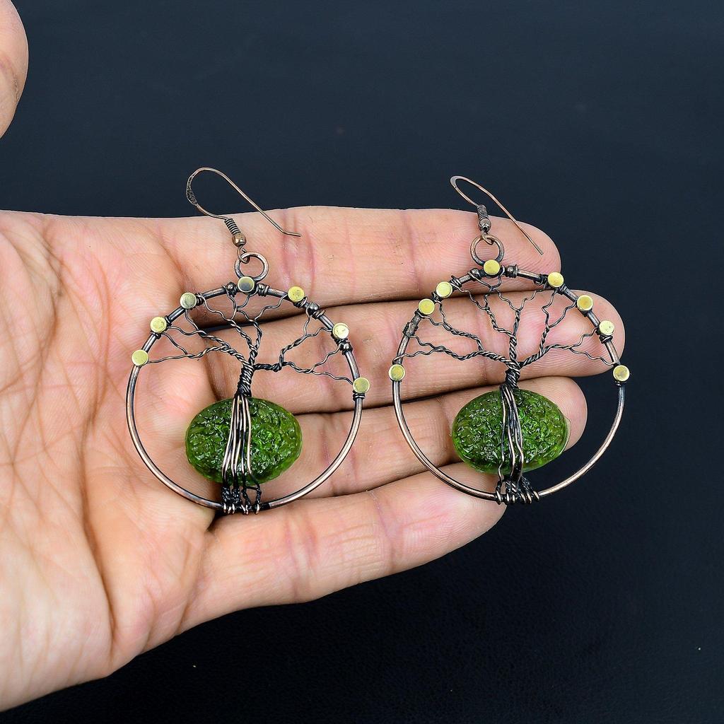 Moldavite Earrings, 999 Copper Wire Wrapped Gemstone Jewelry, Handmade Earrings For Mother Day