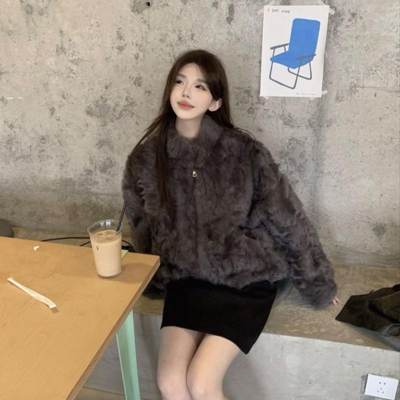 New Lamb Wool Coat Women's Environmentally Friendly Fur Loose and Thickened Short Stand-up Collar Coat In Winter with Cotton To Keep Warm