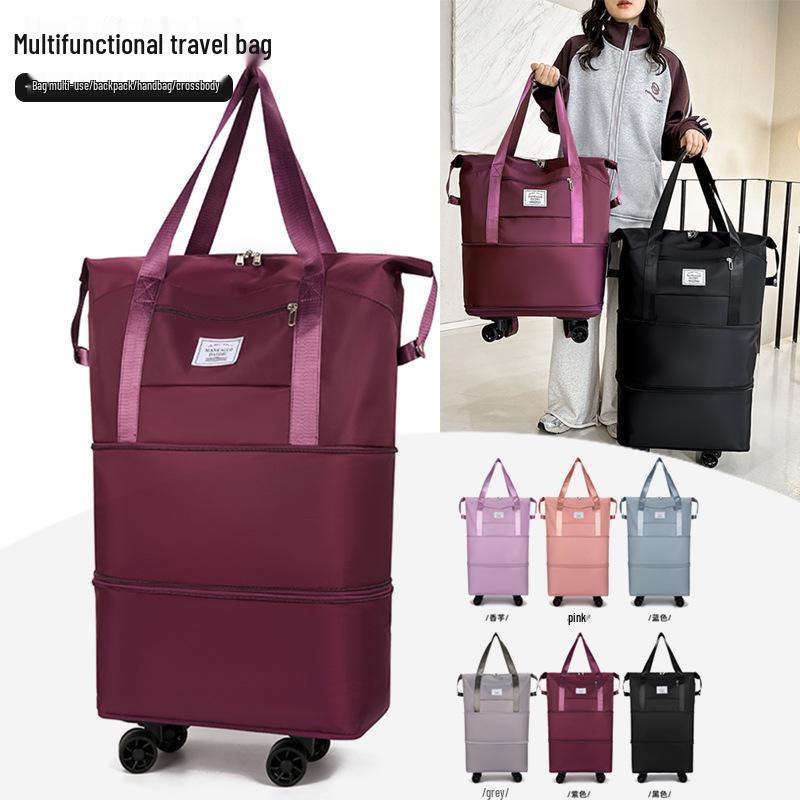 Large Capacity Multifunctional Trolley Handbag: Portable Travel, Business Trip & Maternity Storage Solution with Removable Wheels