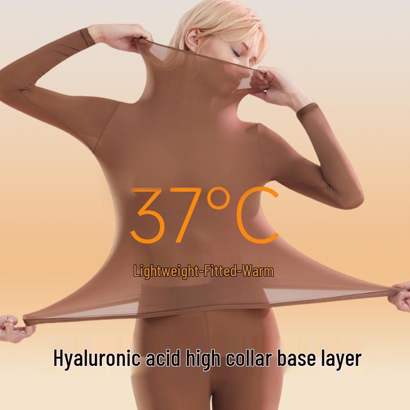 Women's Seamless High Elastic Turtleneck Base Layer with Hyaluronic Acid Skincare, Long Sleeve, High Collar, Warm Underwear.
