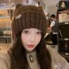 Women's Hat Cat Ear Knitted Hat Autumn Winter Beanie, Cute Letter Tag, Warm Student Style