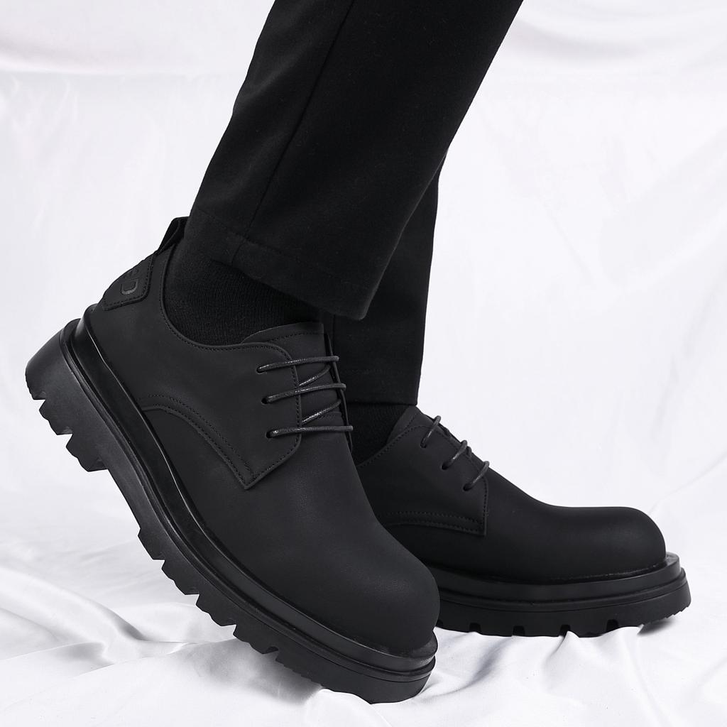 British Style Dark Black Leather Shoes Trendy Men and Women Niche Retro Matte Leather Heightening Big Head Shoes Men's Thick-soled Derby Shoes