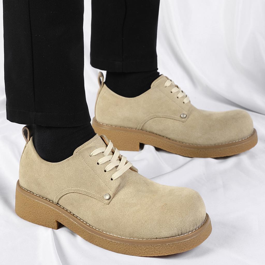 Derby Shoes 2025 New Low-top Cattle Cashmere Men's Retro Tooling Shoes with High Platform and Summer Breathable Fur Shoes