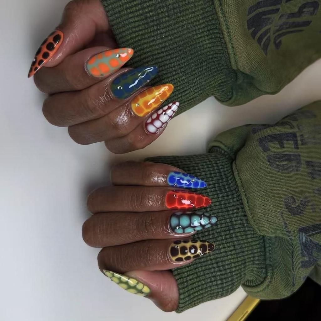 Almond Press On Nails Glossy Fake Nails Stick On Nails In 12 Sizes 24 Pcs French Nails Tips for DIY Nail Art Decorations