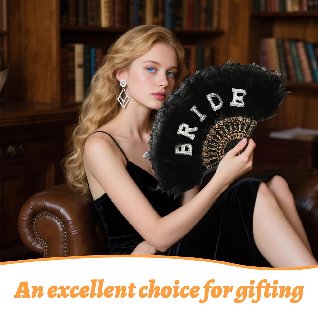 Lightweight and foldable, the fan effortlessly fits into clutches or gift bags, ensuring portability while maintaining its intricate lace and feather structure.