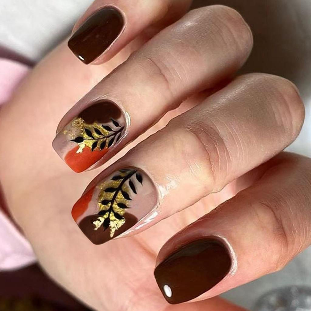 Elevates your nail art with these false nails featuring a blend of prints and gold foil accents, crafted from durable ABS material for long lasting wear and effortless salon quality style.
