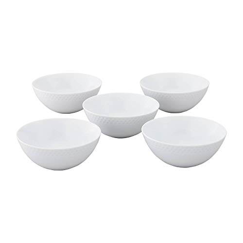 Noritake Bowl Set, 14cm, 490cc, Rhythm White, Microwave and Dishwasher Safe, Fine Porcelain, 5 Pieces, F5306L/1610